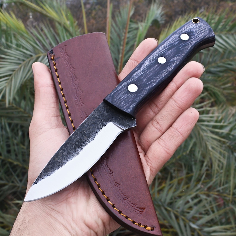 This Bushcraft knife is Handmade with 4.5mm (approx ) thick 1095 Highcarbon Steel having 56-58 HRC. These knives have Full tang construction that runs across entire knife from made to handle that provides better balance and durability and great for your camping and hunting collection.
